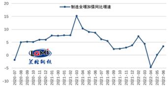 6月份,規模以上工業增加值同比實際增長3.9%,增速較上月加快3.2個百分點。其中,6月份制造業增加值同比增長3.4%(詳見圖5),主要用鋼產品中,工業機器人產量增速轉正,汽車產量大幅增長,發電設備產量較快增長。
