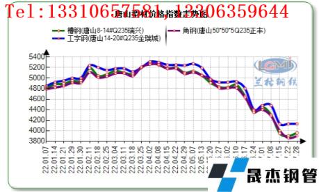 mso-font-kerning:0.0000pt;background:rgb(255,255,255);mso-shading:rgb(255,255,255);">7月份型材價格走寬幅下行行情,唐山型材價格月度降幅400-500元之間,年內振幅1200-1400元之間。7月28日槽鋼(唐山8-14#Q235瑞興)報價3960元,年內價格區間5280-3900元,振幅1320元,工字鋼(唐山14-20#Q235金瑞城)報價4130元,年內價格區間5310-4130元,振幅1180元。角鋼(唐山50*50*5Q235正豐)報價3900元,年內價格區間5260-3860元,振幅1400元。年內高位在7月份,目前處于年內低位。mso-font-kerning:0.0000pt;background:rgb(255,255,255);mso-shading:rgb(255,255,255);">