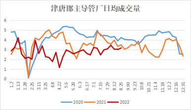8月在統計高爐開工率小幅抬升。8月28日,網統計全國主要厚壁無縫鋼管企業高爐按容積計算開工率78.74%,較上月末上升3.41個百分點,月度平均開工率較上月下降0.11個百分點。其中8月唐山在統計熱軋帶鋼產線平均產能利用率54.34%,環比下降7.79個百分點。長流程高爐鐵水恢復,短流程因限電影響生產。不過,月內冷軋基料、帶鋼和熱卷之間價差仍然偏窄,可替代性較強。管廠操作傾向謹慎樂觀,多需求驅動排產,短期供應增勢緩和。