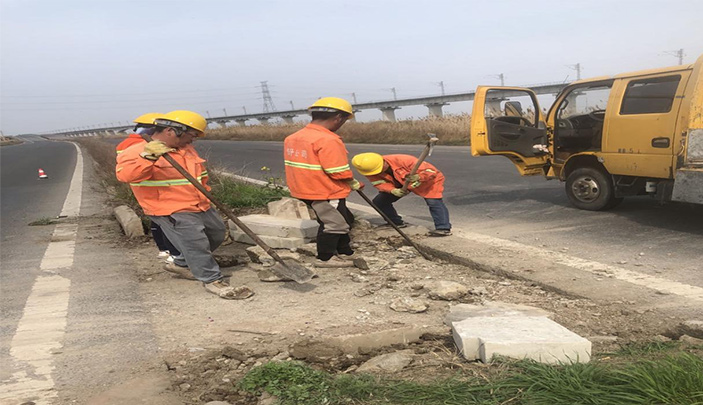 4月11日,市政分公司接到緊急任務,急需在周五前完成燒香河大橋至242路段約100米道口路緣石修復作業。