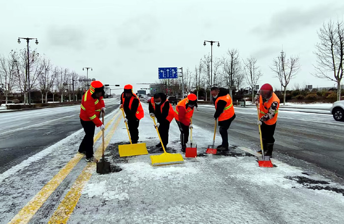 ? ? ? ?連日來(lái),受強(qiáng)冷空氣影響,鵝毛雪花持續(xù)飄落港城大地。為保障行人車輛往來(lái)徐圩新城安全通行。保潔分公司全員上下協(xié)力同心、“遇雪”奮戰(zhàn),確保責(zé)任區(qū)域道路車輛行人安全出行。